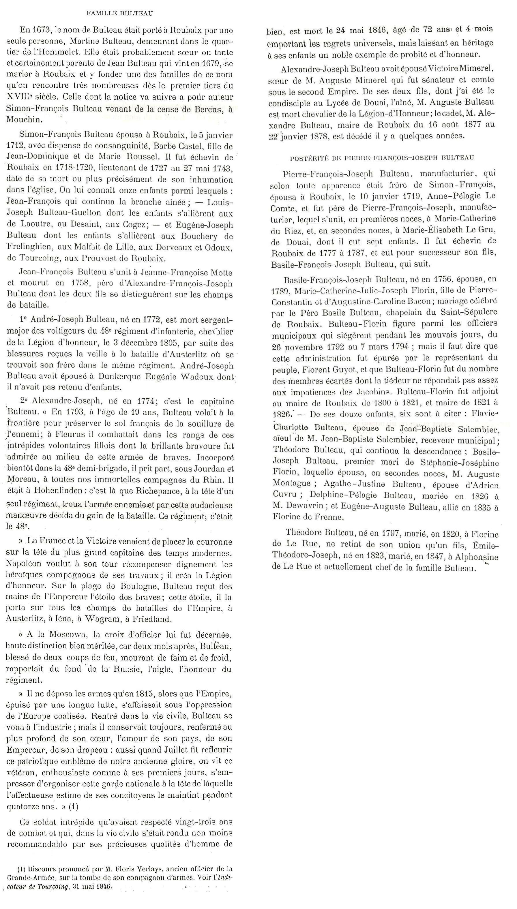 Bulteau, né en 1774.* Marie-Louise Bulteau, née le 28 décembre 1775, Roubaix .